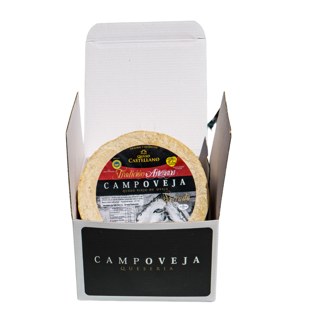 Queso de la Gama Campoveja Tradición artesana. Gama de quesos elaborados como antiguamente con leche cruda de oveja y cuajo natural de cortero, madurados sobre tabla de madera y envejecidos en bodega subterránea.