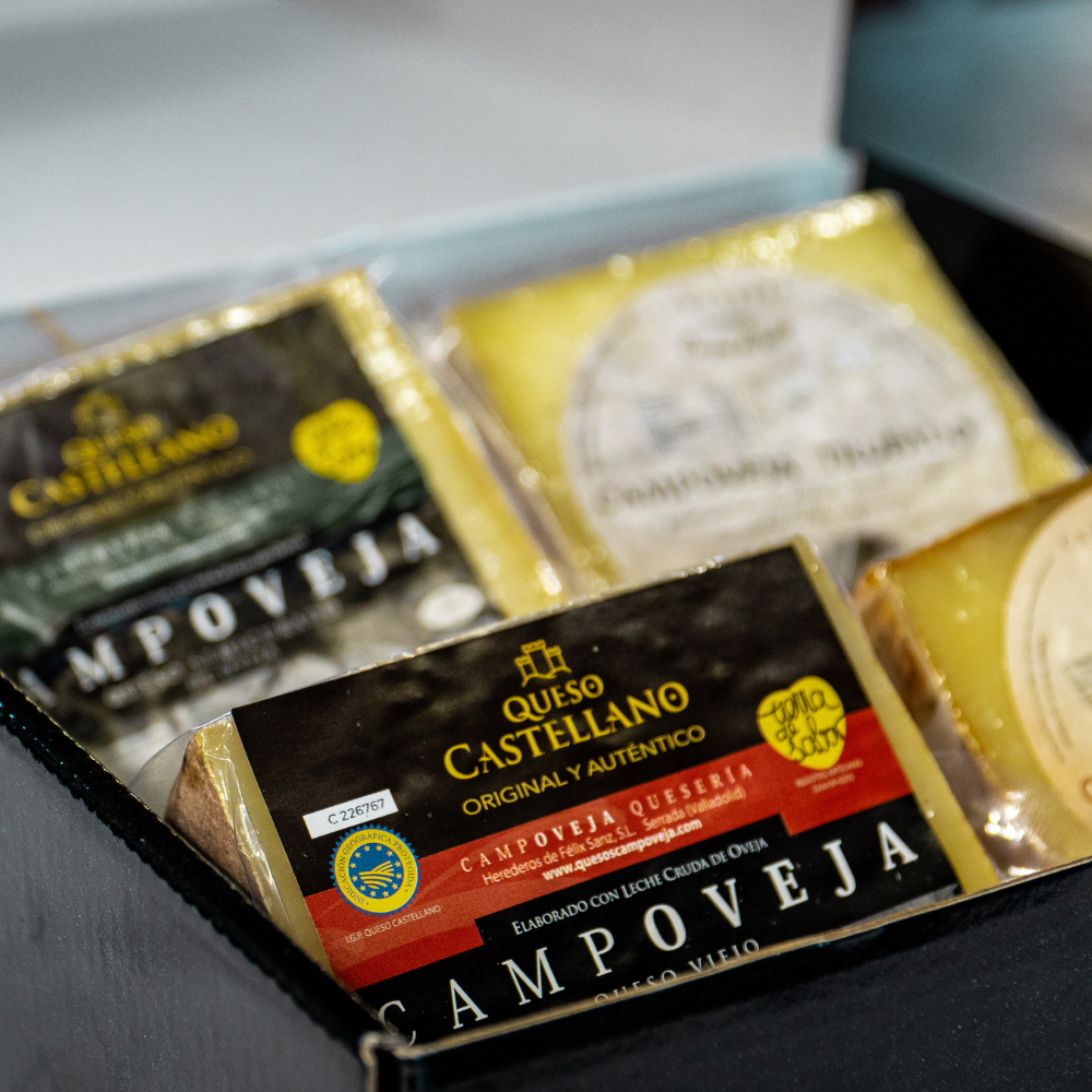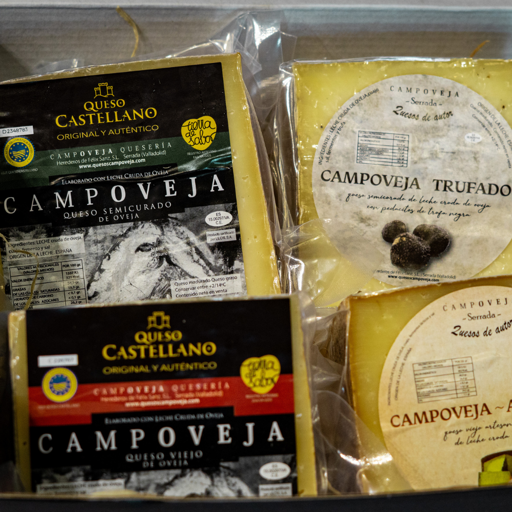 Cuatro sabores esenciales de Campoveja reunidos: 1/8 de Queso Semicurado, 1/8 de Queso Viejo, 1/8 de Queso Ahumado y 1/8 de Queso Trufado. La selección perfecta para disfrutar la variedad y riqueza de nuestra quesería.